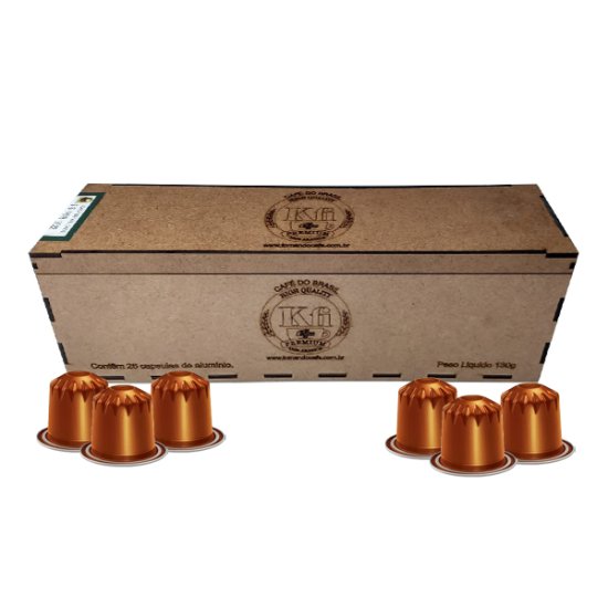 Caixa de papel com 10 unidades de capsulas de alumínio individuais. Café torrado e moído.